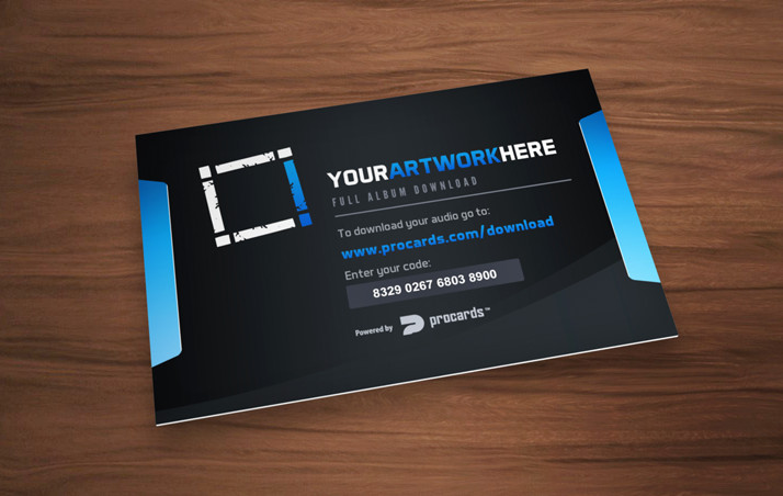 Each template contains clear instructions for setting up your artwork and we’re always on hand for tips and advice. Your artwork can be full colour both sides and we always recommend including clear download instructions. Just leave a space somewhere for the download codes and we will automatically add them to your download cards. Email your designs to artwork@procards.com where we’ll check them carefully to make sure you attain a perfect print quality.