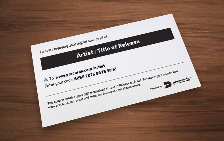 To begin simply create your free ProCards account. Inside it’s incredibly easy to launch and manage your download coupon projects. You can buy download coupons, upload your audio, personalize your download pages, view real time download statistics and lots more. Sign up now and have a look around. It’s the best way to see what’s available and how powerful our platform really is.