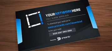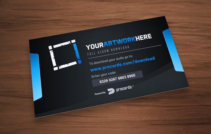 Each template contains clear instructions for setting up your artwork and we’re always on hand for tips and advice. Your artwork can be full colour both sides and we always recommend including clear download instructions. Just leave a space somewhere for the download codes and we will automatically add them to your download cards. Email your designs to artwork@procards.com where we’ll check them carefully to make sure you attain a perfect print quality.